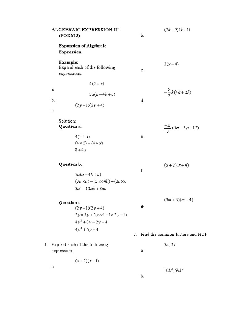 Algebraic Expression Form 2 - Algebraic expression ii (form 2) 1.