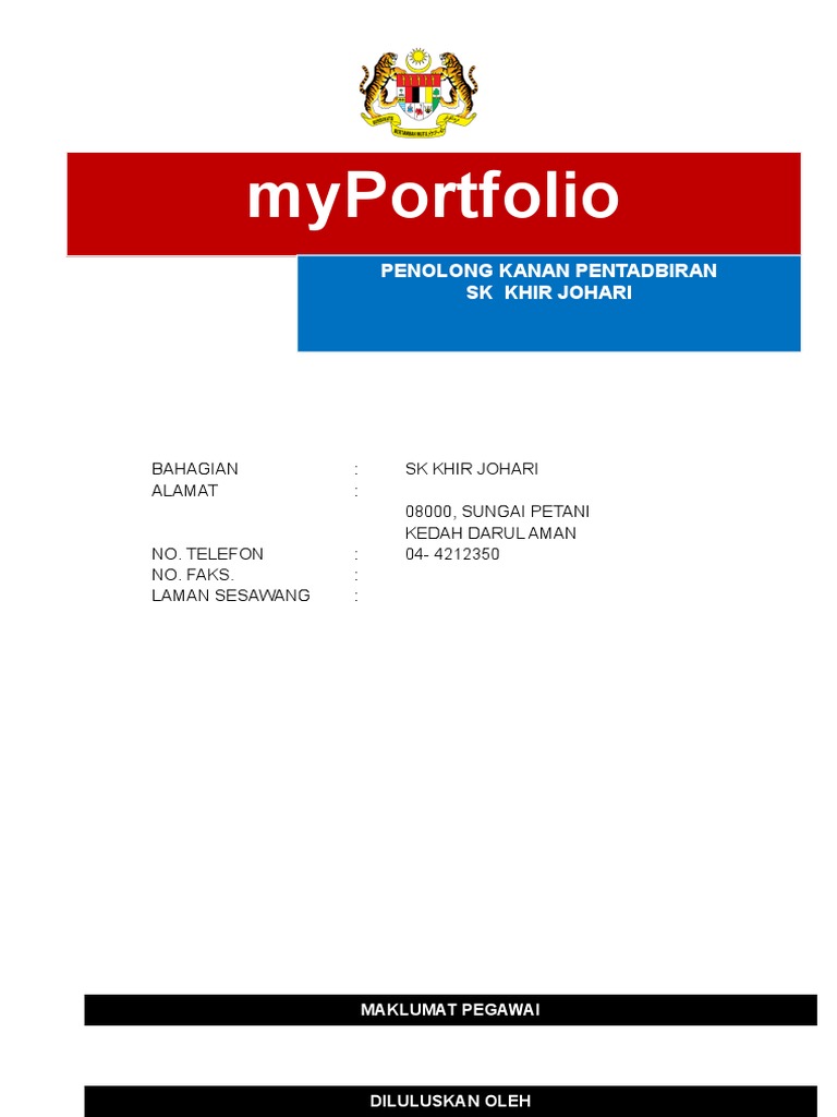 Myportfolio proses dan carta alir 2. Pengenalan kepada templat myportfolio guru penolong kanan pentadbiran sekolah rendah. Pada 12 julai 2018, mampu telah mengumumkan penggunaan pekeliling kemajuan pentadbiran awam bil. Guru penolong kanan hal berikut adalah komponen penting myportfolio guru Sehubungan dengan itu, admin berharap perkongsian pada kali ini dapat memudahkan urusan anda dalam menyediakan myportfolio ini.