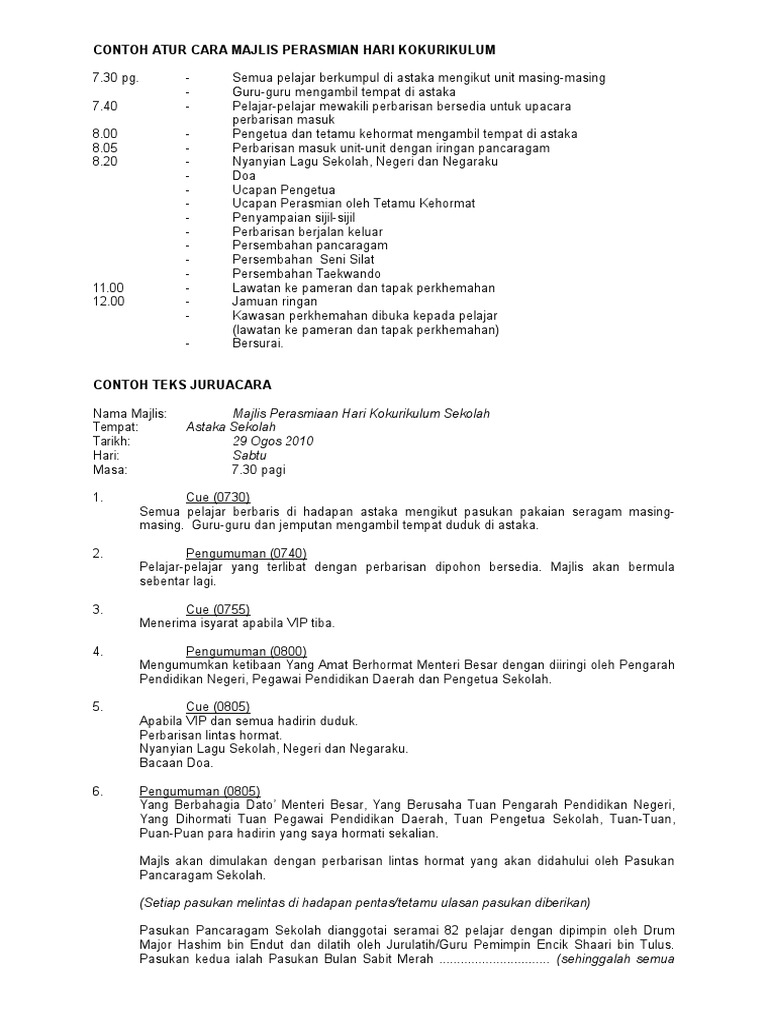 Aturcara Majlis Perasmian 07 from imgv2-2-f.scribdassets.com Aturcara majlis perasmian dan makan malam. Sipon, ketua pengarah pelajaran malaysia. Para peserta, jemputan dan pembentang mengambil tempat. 9 contoh teks juruacara masa : Ucapan perasmian oleh tuan pengetua & gimik pelancaran4. Ucapan perasmian oleh vip jemputan. Buku aturcara majlis perasmian bangunan perpustakaan awam pahang. Teks pengacara majlis perasmian penutup cpd.